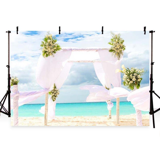 Wedding Seaside Beauty White Flowing Curtain Backdrop for Summer Sea Photography