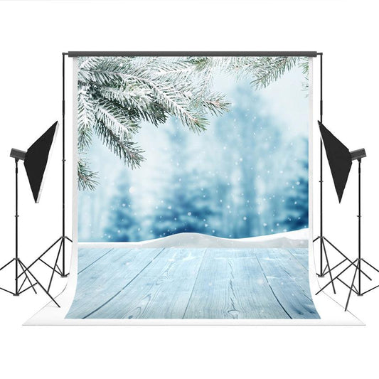Winter Snow Wood Floor Photo Backdrop for Photo