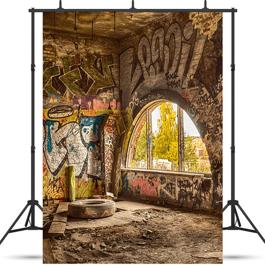 Abandoned Factory Colourful Graffiti Backdrop for Photography SBH0177