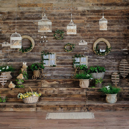 Brown Wood Wall Easter Rabbit Flag Photo Booth Backdrop for Session