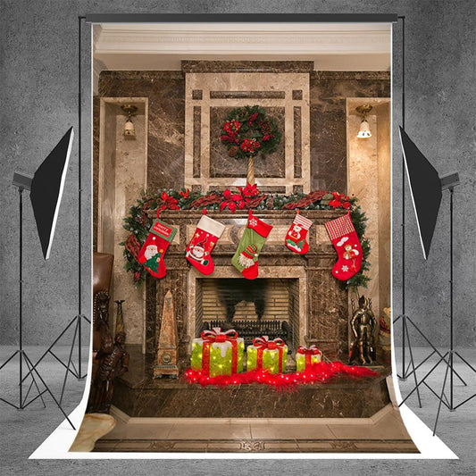 Christmas Fireplace Socks Photo Backdrops for Studio