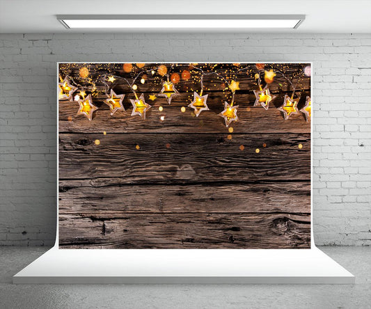 Christmas Light Star Photography Backdrop Wood Wall Background