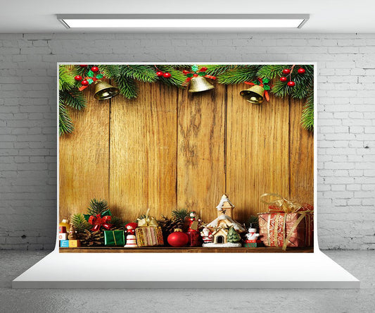 Christmas Gift Shop Decor Wood Floor Backdrops for Picture