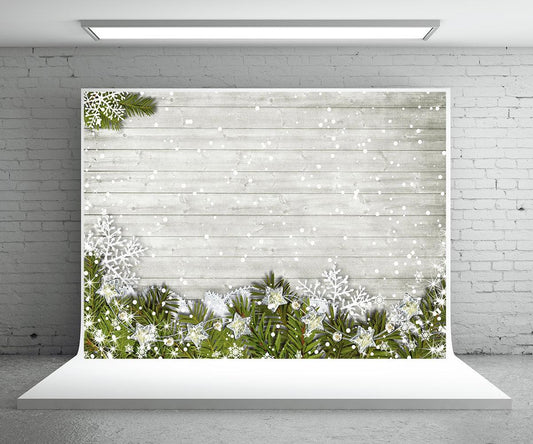 Christmas Photography Backdrop Snowflake White Wood Wall Background