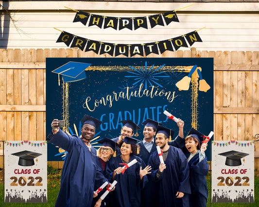 Dark Blue College Graduation Backdrop Background for Photography Celebration Party TKH1849