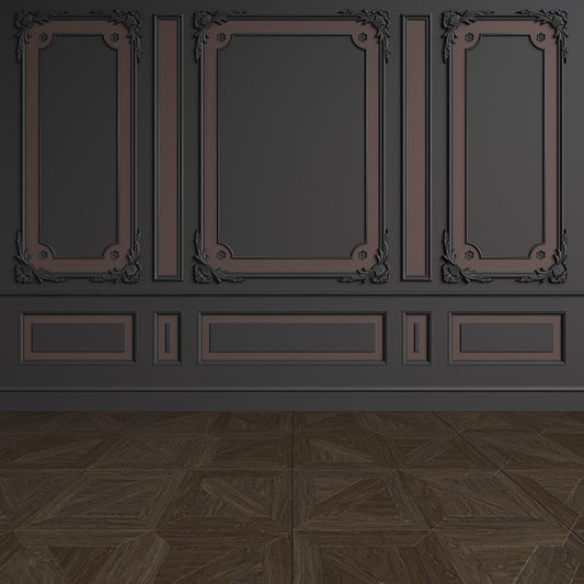 Dark Brown Wood Floor Black Wall Art Wall Photo Booth Prop Backdrop for Wedding