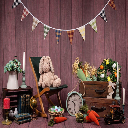 Dark Brown Wood Wall Carrot Box Easter Backdrops