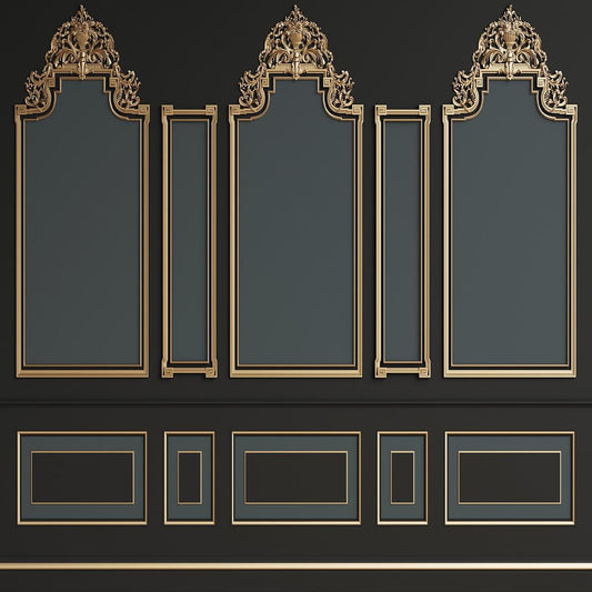 Dark Green Gold Frame Wall Wood Floor Wedding Phortography Backdrop
