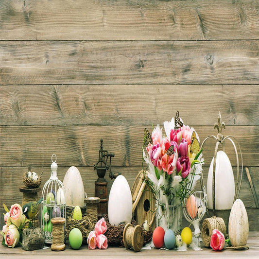 Easter Eggs And Flower Decoration Backdrop For Photography Backdrop
