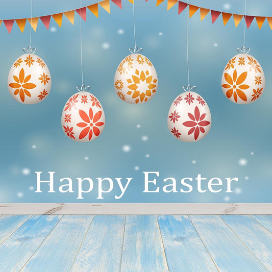 Light Blue Happy Easter Wood Floor Eggs Photography Backdrops