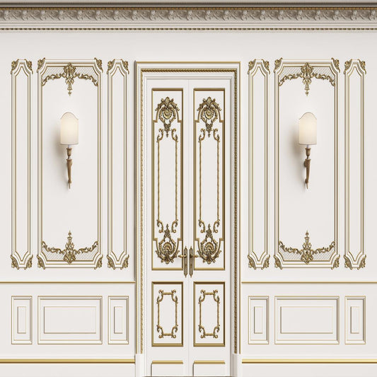 Luxurious Wedding Gold Texture White Wall Door Backdrop for Studio Prop