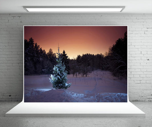 Night of Sky Snow Wood Pine Christmas Backdrops