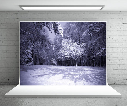 Night Snow Forest Photography Backdrop Winter Photo Background