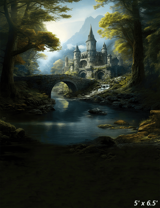Old Castle Bridge River in Forest Free Backdrop for Photo SBH0686