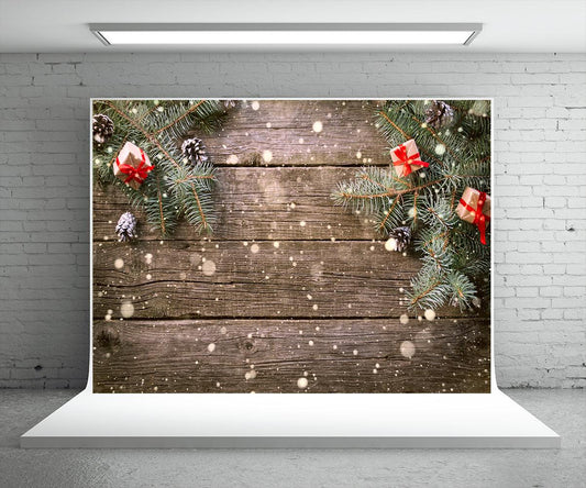 Pine Branch Wood Board Photography Backdrop for Christmas