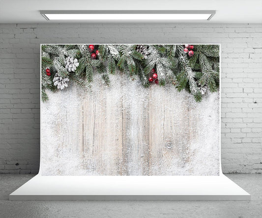 Pine Branch White Wood Wall Photography Backdrop Christmas Background