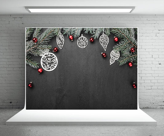 Pine Branch Black Background Photography Backdrop for Christmas