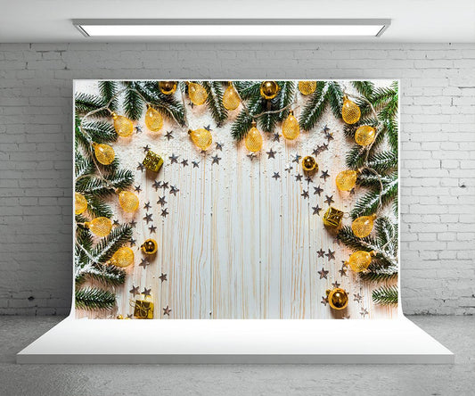 Pine Branch Light Star Wood Wall Photo Backdrop for Christmas
