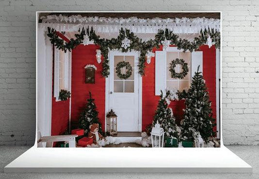Red Velvet Sofa Christmas Backdrop for Photo Studio SBH0668