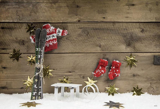 Ski Wood Floor Christmas Tree Backdrop for Photography