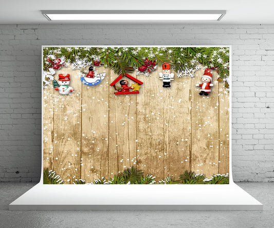 Snow Wood Wall Backdrops for Winter Christmas Photography