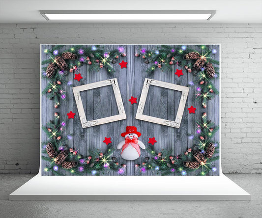 Snowman Pine Branch Wood Wall Photography Backdrop for Christmas