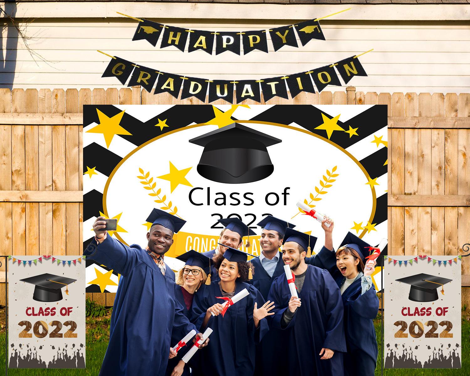Black and White Background Graduation Party Decorations Yellow Photo Backdrop for Photography TKH1859