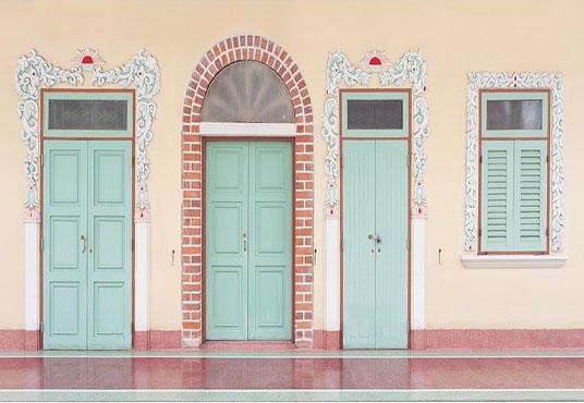 Cyan Wood Door Brown Wall Backdrop for Photography Background