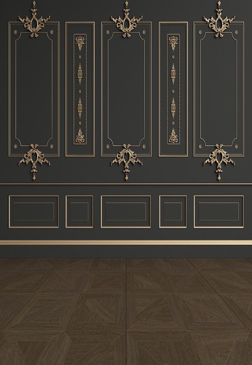 Golden Sculpture Decor Black Wall Photography Backdrop for Wedding