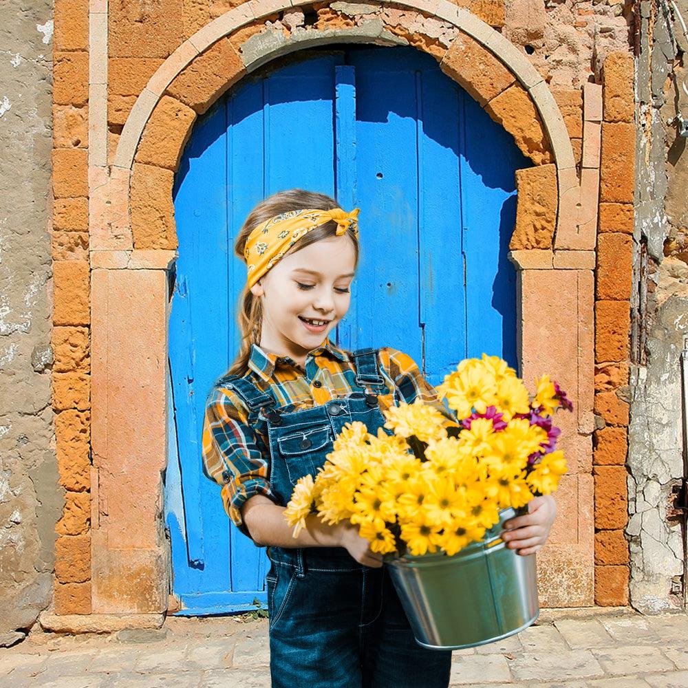 Rustic Door Distressed Blue Double Doors Scenic Photography Brick Background for Photo Booth K14841