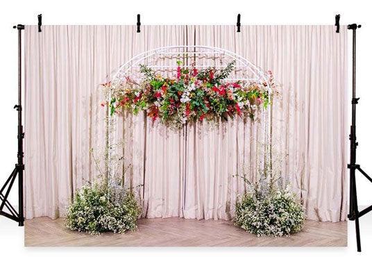 Wedding Bridal Shower Pink Curtain Green Grass Backdrop for Ceremony Party Photography
