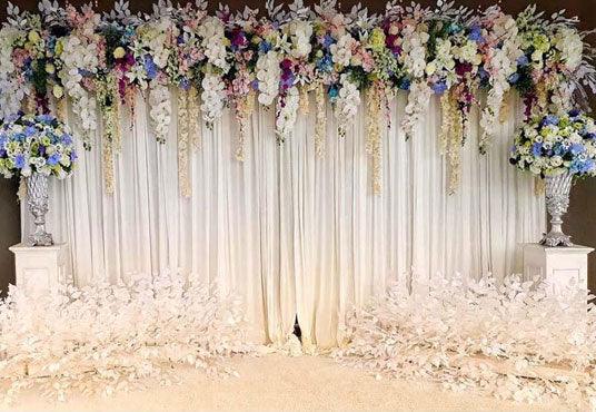White Wedding Party Ceremony Curtain Floral Photography Backdrops