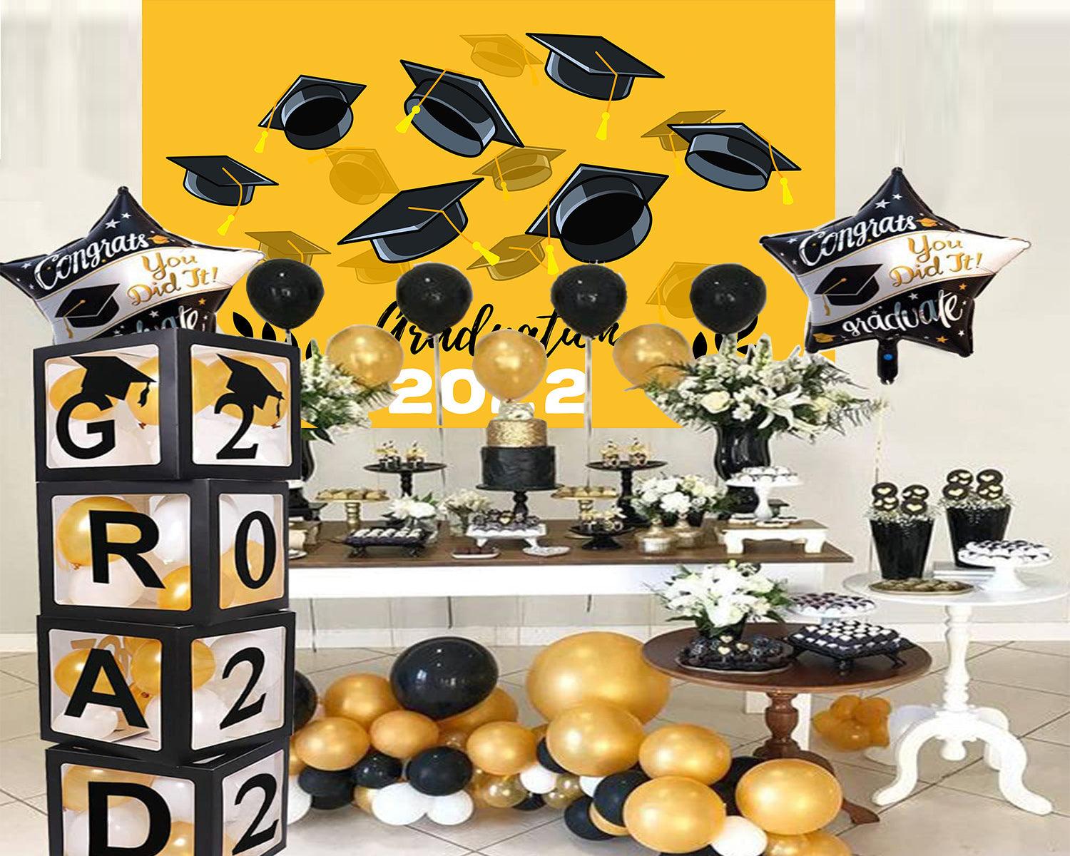 Yellow background Bachelor hat decoration Graduation Party Backdrop for Photography Graduation Party Decorations TKH1866